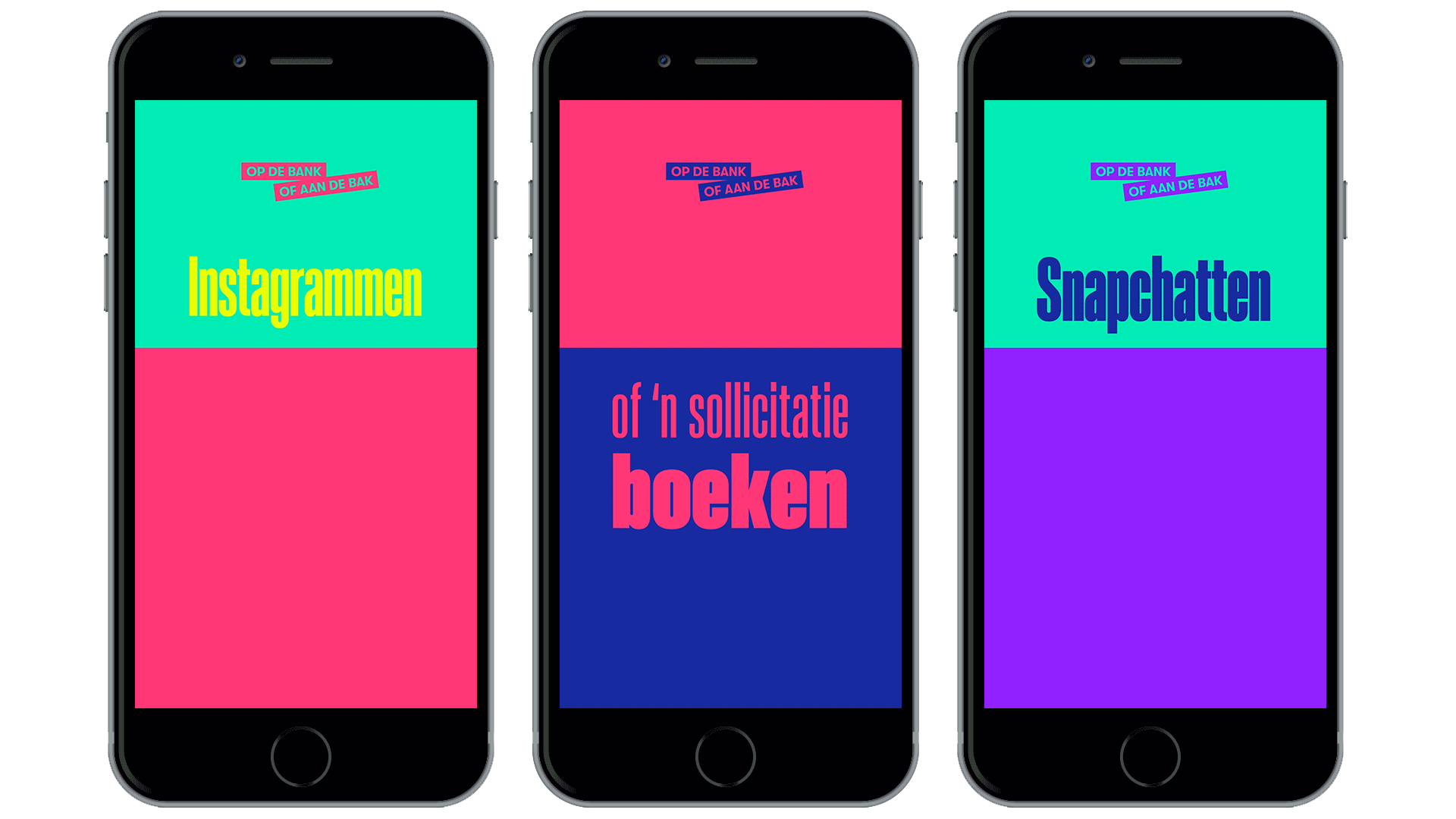 De campagne is aanwezig waar de jongeren zijn (op scholen en in de wijk, o.a. via mobile zoning) en brengt de boodschap over in makkelijk verteerbare happen. Speciaal voor de ‘Aan De Bak’-garantie ontwikkelden we een online platform dat de scholieren 4 jaar lang helpt. Na het doen van een videoquiz krijg je hierop alleen informatie die passend is voor de loopbaan die bij je past: van open dagen tot programma’s en andere carrière-informatie. Je persoonlijk reisgenoot tijdens je loopbaanoriëntatie.