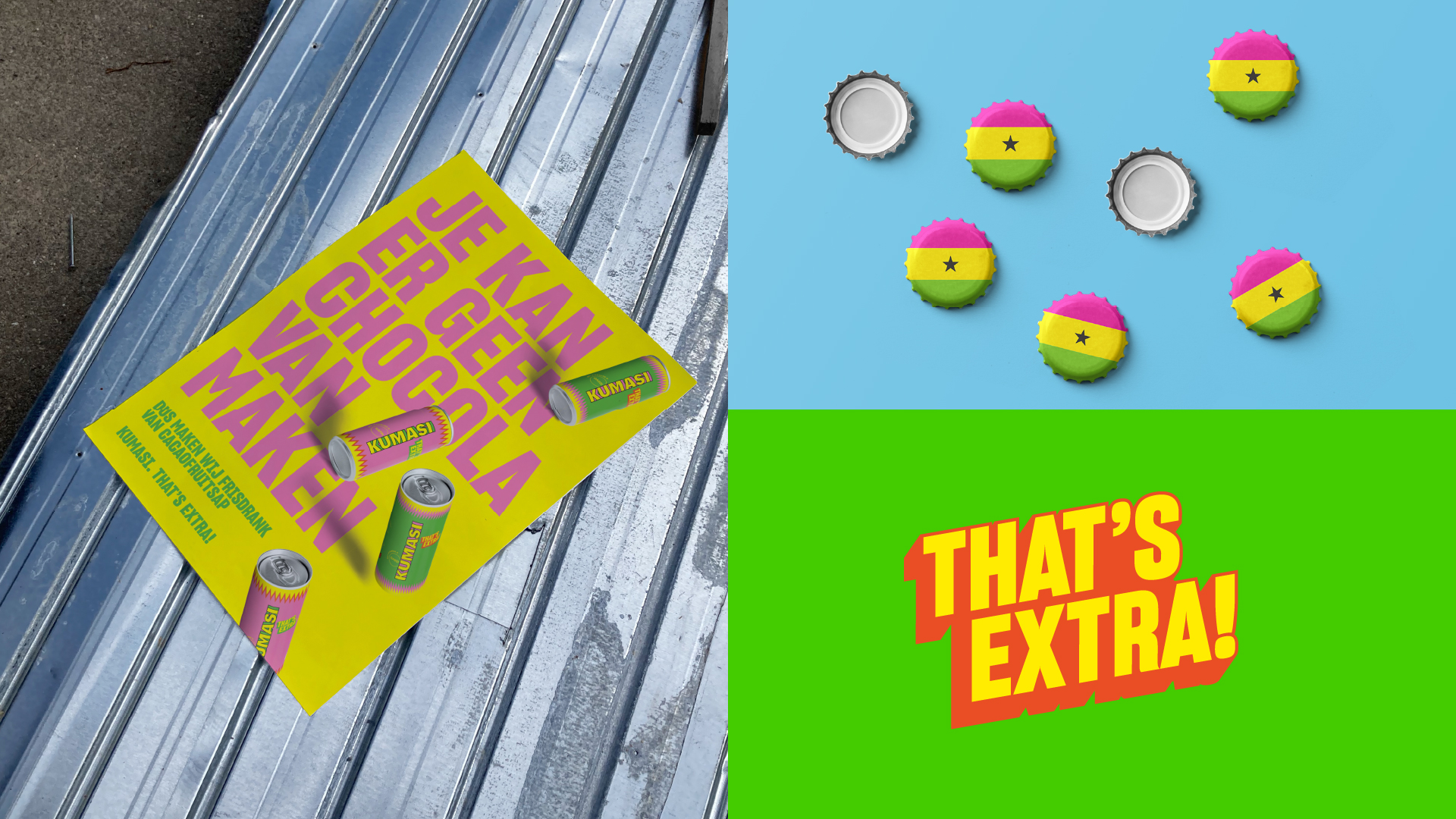 We besloten dat de kern van alle communicatie zou moeten zijn: That’s extra. Want Kumasi is extra tasty voor jou en extra geld voor de cacaoboer. Met een ‘extra’ kleurrijke visuele identiteit die past bij de fruitige smaak en de Afrikaanse roots viert.