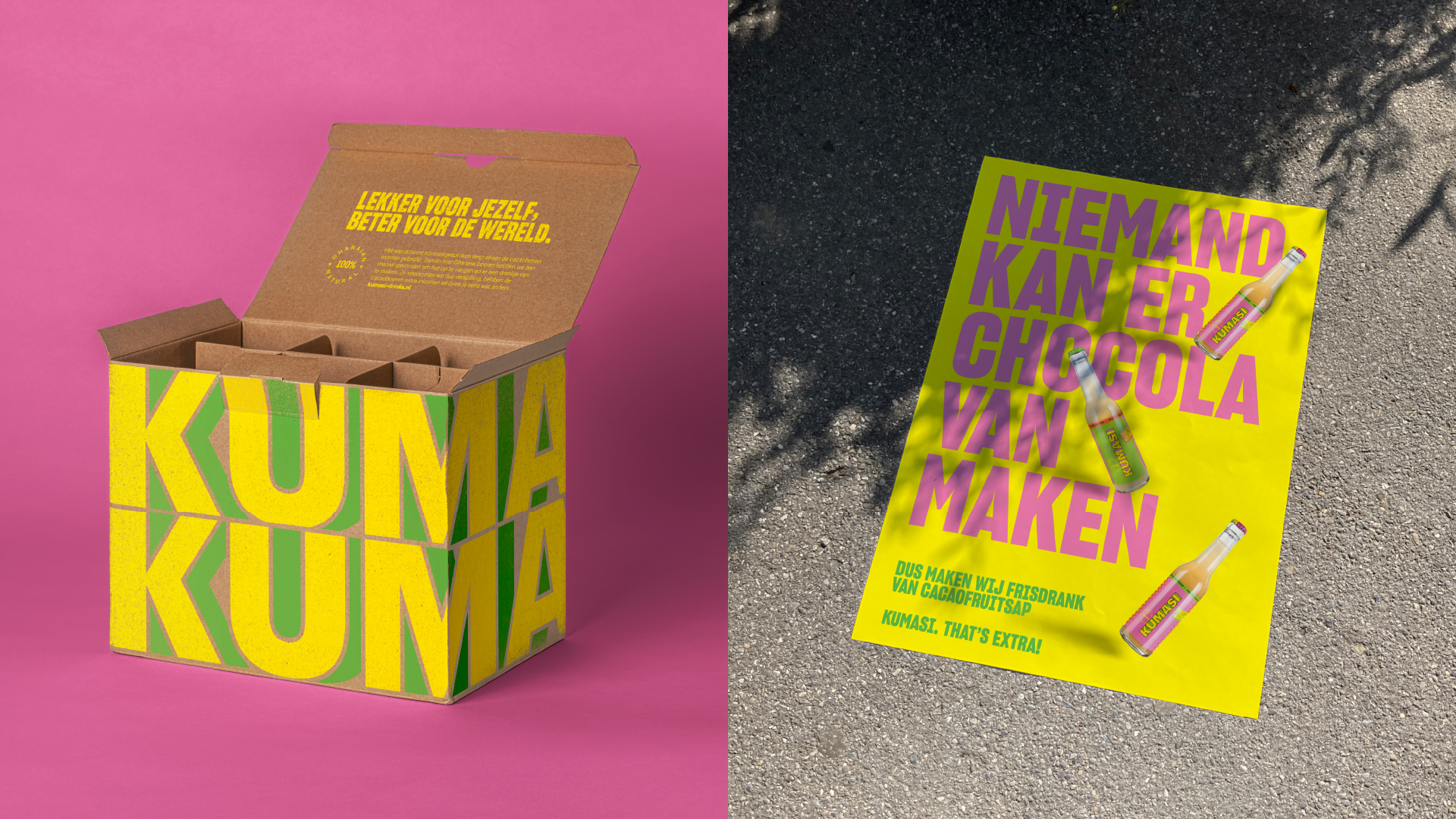 Na thuiskomst in Nederland benaderden Lars en zijn team ons voor branding en communicatie rondom dit onbekende sap. Ze noemden het al Kumasi, genoemd naar de Ghanese regio waar het vandaan komt. Hoewel ze nog midden in het proces zaten om het sap op de Nederlandse markt te krijgen, vonden ze het belangrijk om het Kumasi-verhaal te gaan vertellen.